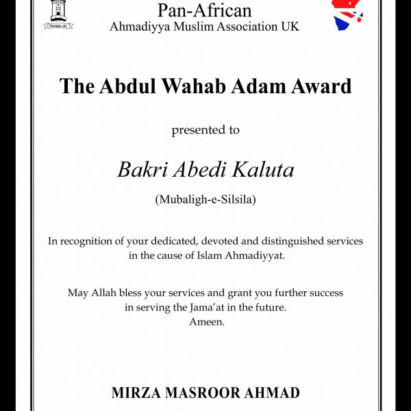 Maulana Bakri Abedi Kaluta trained as a missionary at Jamiah Ahmadiyya Rabwa Pakistan and has served in various capacities including Regional Missionary and Principal of Jamiah Ahmadiyya in Tanzania. He is currently the In-charge of Swahili Desk, Tanzania.