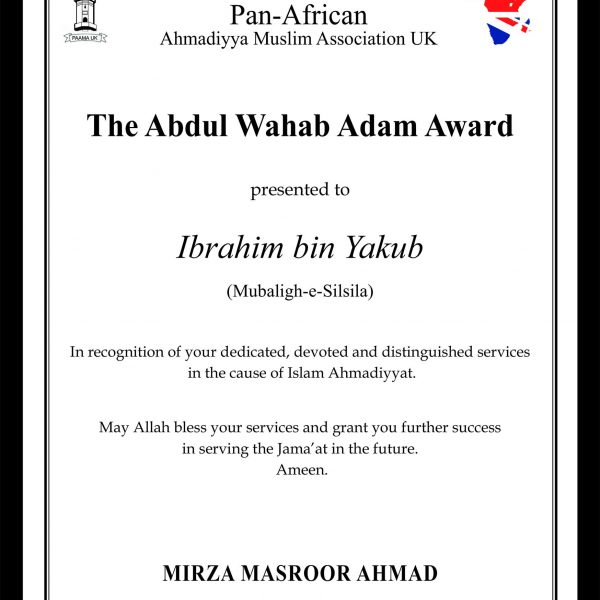 Maulana Ibrahim bin Yaqub trained as a missionary at Jamiah Ahmadiyya Rabwa Pakistan and has served in various capacities as a missionary of the Ahmadiyya Muslim Community in Islam. He is currently serving as the Amir and Missionary In-charge Trinidad and Tobago.