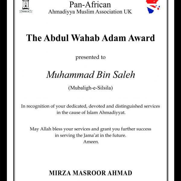 Maulana Muhammad Bin Saleh trained as a missionary at Jamiah Ahmadiyya Rabwa, Pakistan and has since served the Jama’at in Ghana in various capacities as a missionary and Naib Amir. He also served as the first Missionary who opened the Zimbabwean mission. He is currently serving as the Amir and Missionary In-charge of Ghana.